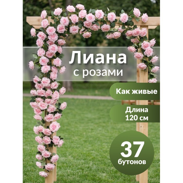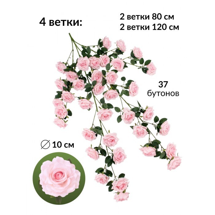Цветы искуственные Розы каскадные (37 штук, 120 см, цветок 10 см) розовый холодный 266216