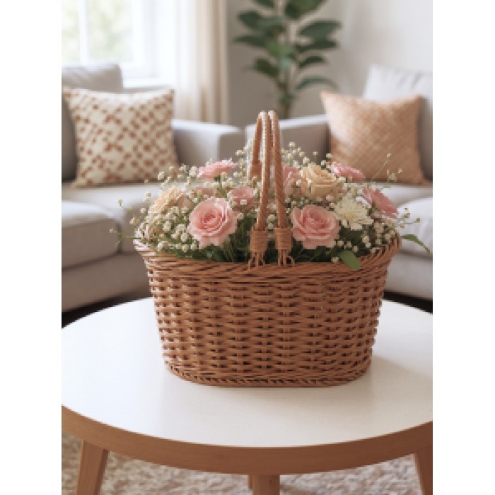 Корзина плетеная с ручками Двойное плетение маленькое S (2 ручки) (30*23*15 ) иск/ротанг, песочный 265838