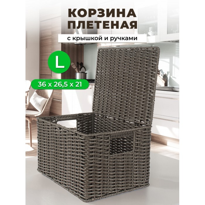 Корзина плетеная с/крыш M 320*220*180-mpl-fbo иск/ротанг, серый 265520
