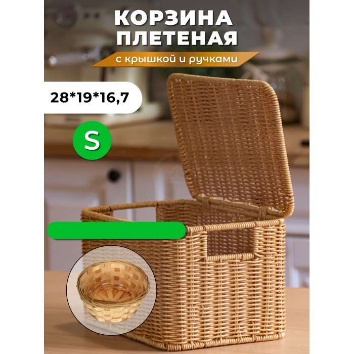 Корзина плетеная с/крыш S 290*190*160-mpl-fbo + салатник 16*7см иск/ротанг, песочный 261624