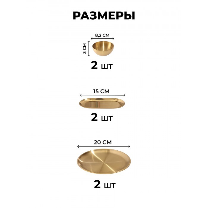 Набор Мисок из нержавеющей стали 9пред (15см- 2шт+20см-1шт+тарел 20см-2шт, бл.овал 18см-2шт, соус-2шт) золото 266206
