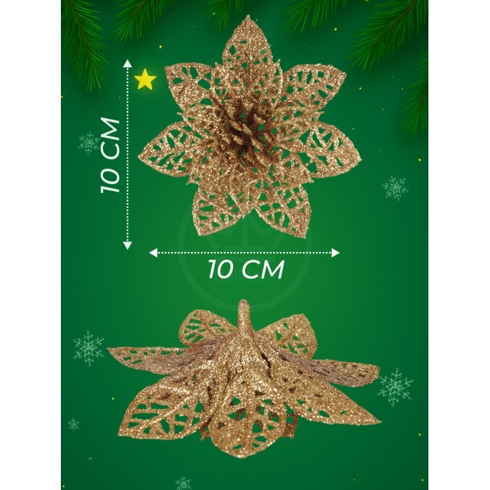 Набор Цветы Пуансеттия (12 штук - 10 см+зажимы 12шт) золото 266222