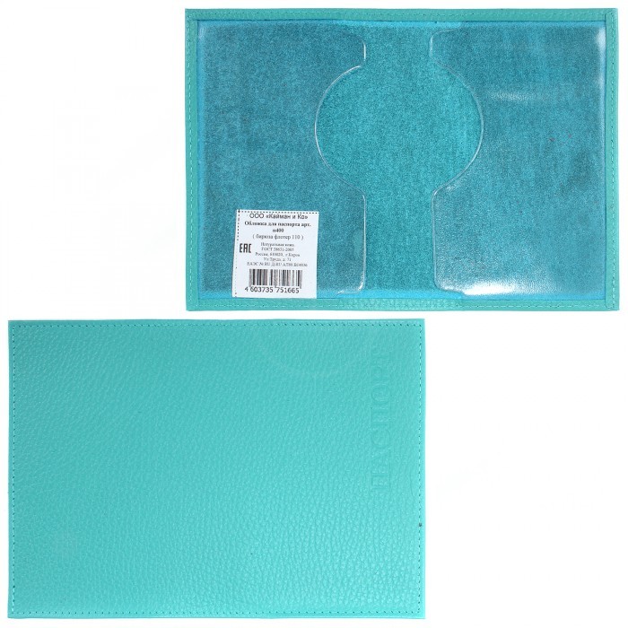Обложка для паспорта Croco-П-400 натуральная кожа бирюза флотер (110) 206891