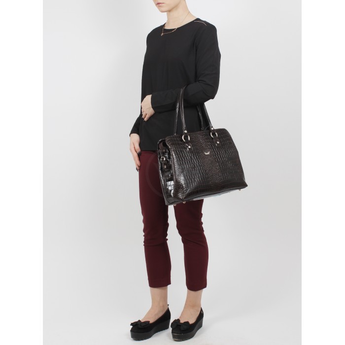 Сумка женская натуральная кожа Варвара-411-3б, 2отд/плеч рем, коричневый крок/корич наплак (4367) 201848