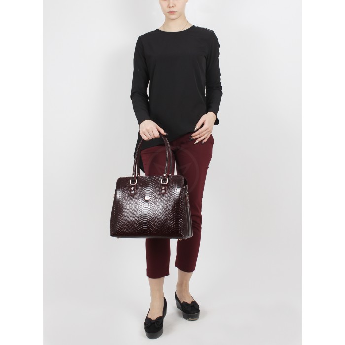 Сумка женская натуральная кожа Варвара-411-3б, 2отд/плеч рем, бордо питон (4369) 202164