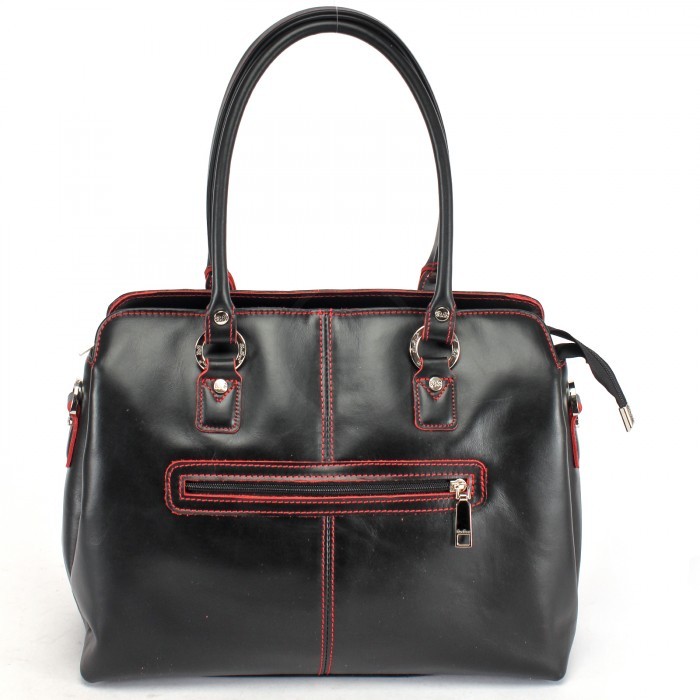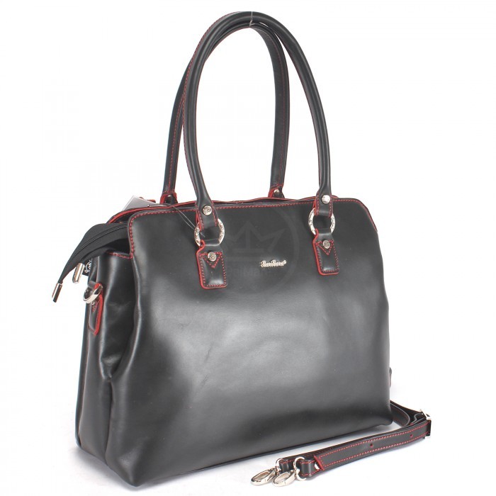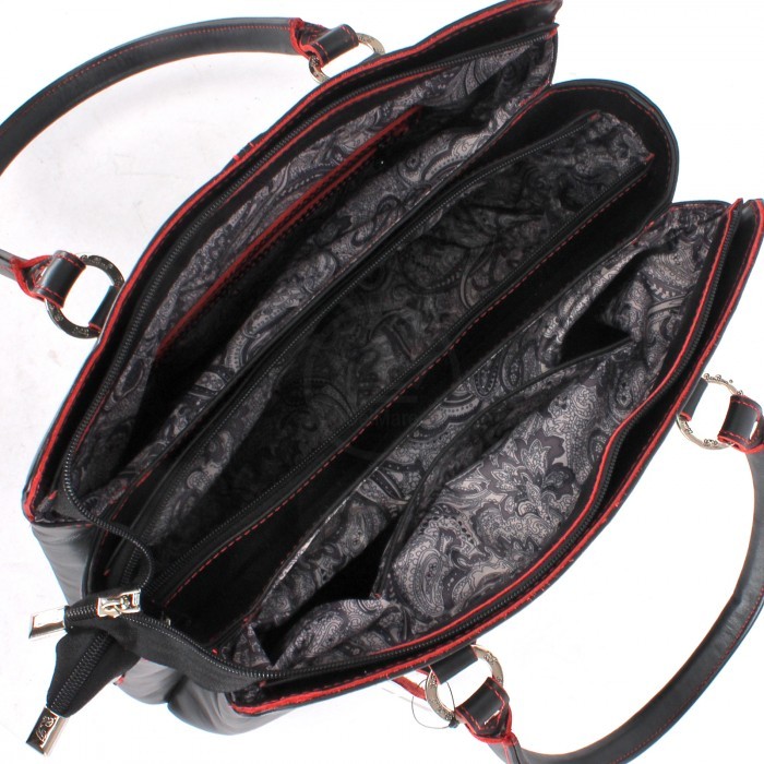 Сумка женская натуральная кожа Варвара-411-3б, 2отд/плеч рем, черный джаз/красная строчка (4483) 227298