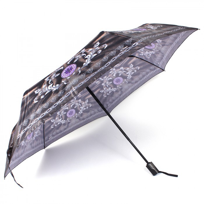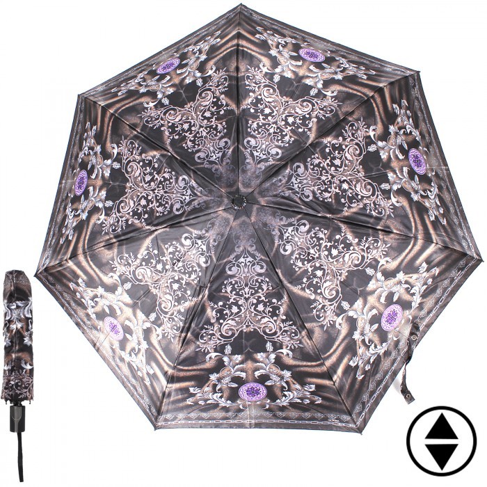 Зонт женский ТриСлона-364b, R=58см, суперавт; 7спиц, 3слож, фотосатин, Узор, черн/серый 212499